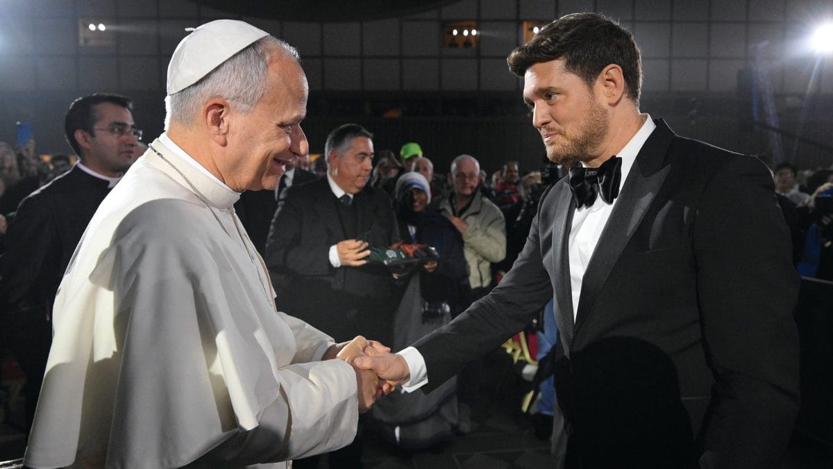 Popiežius Leonas dalyvavo Vatikano Kalėdų koncerte vargšams, kuriame pasirodė ir dainininkas Michael Bublé